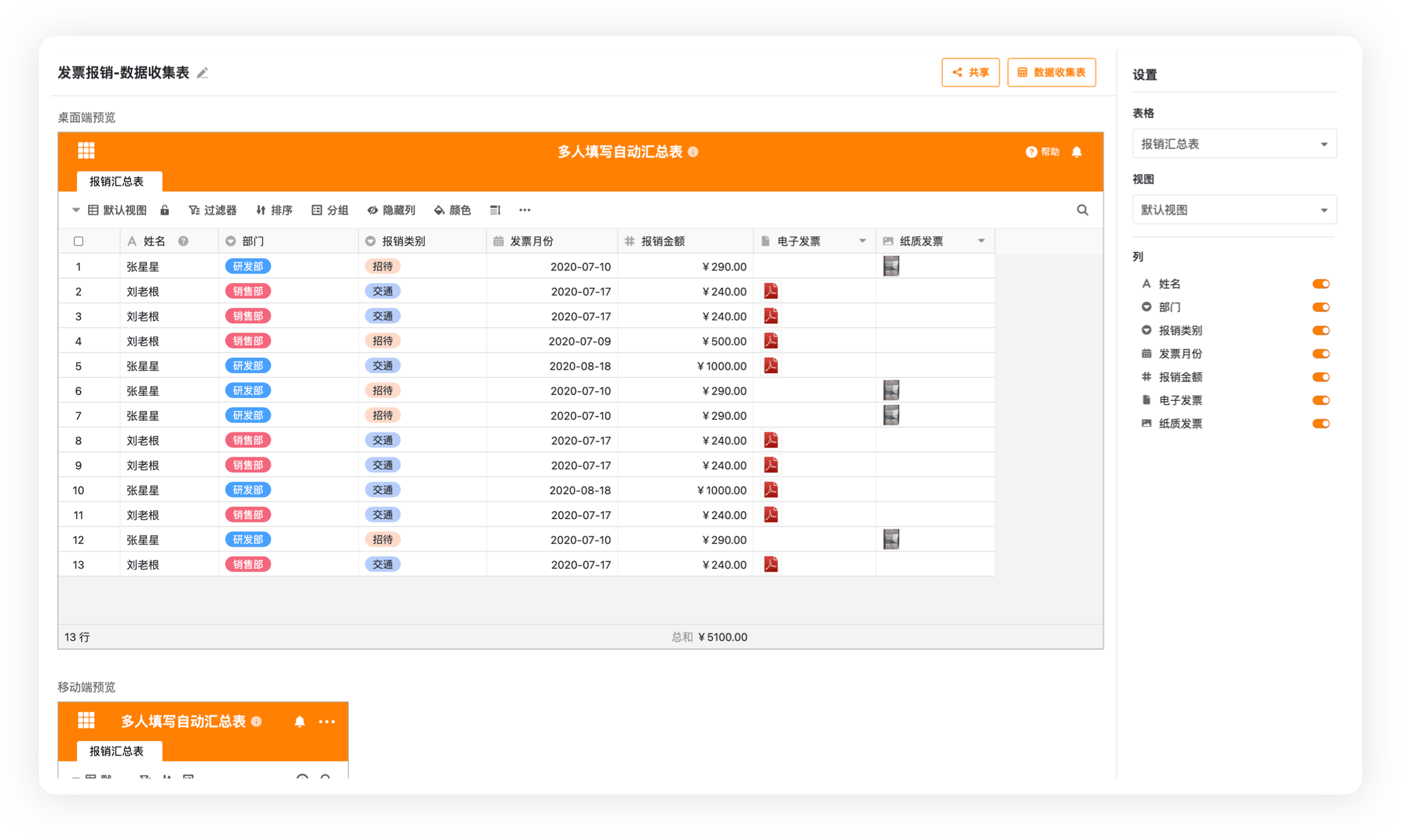 Excel 表格多人填写,自动汇总?用这个 SeaTable 更方便