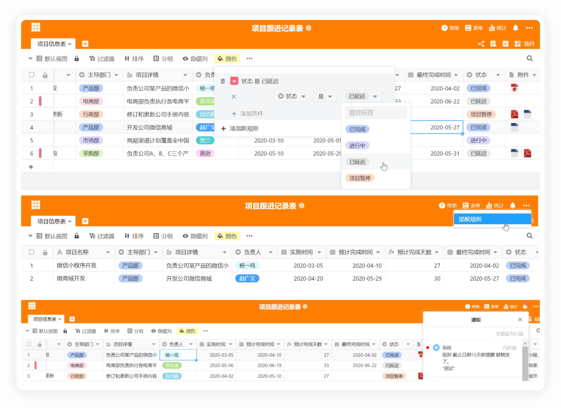 公式列、自定义通知规则、自定义行高亮规则,满足个性化的需求