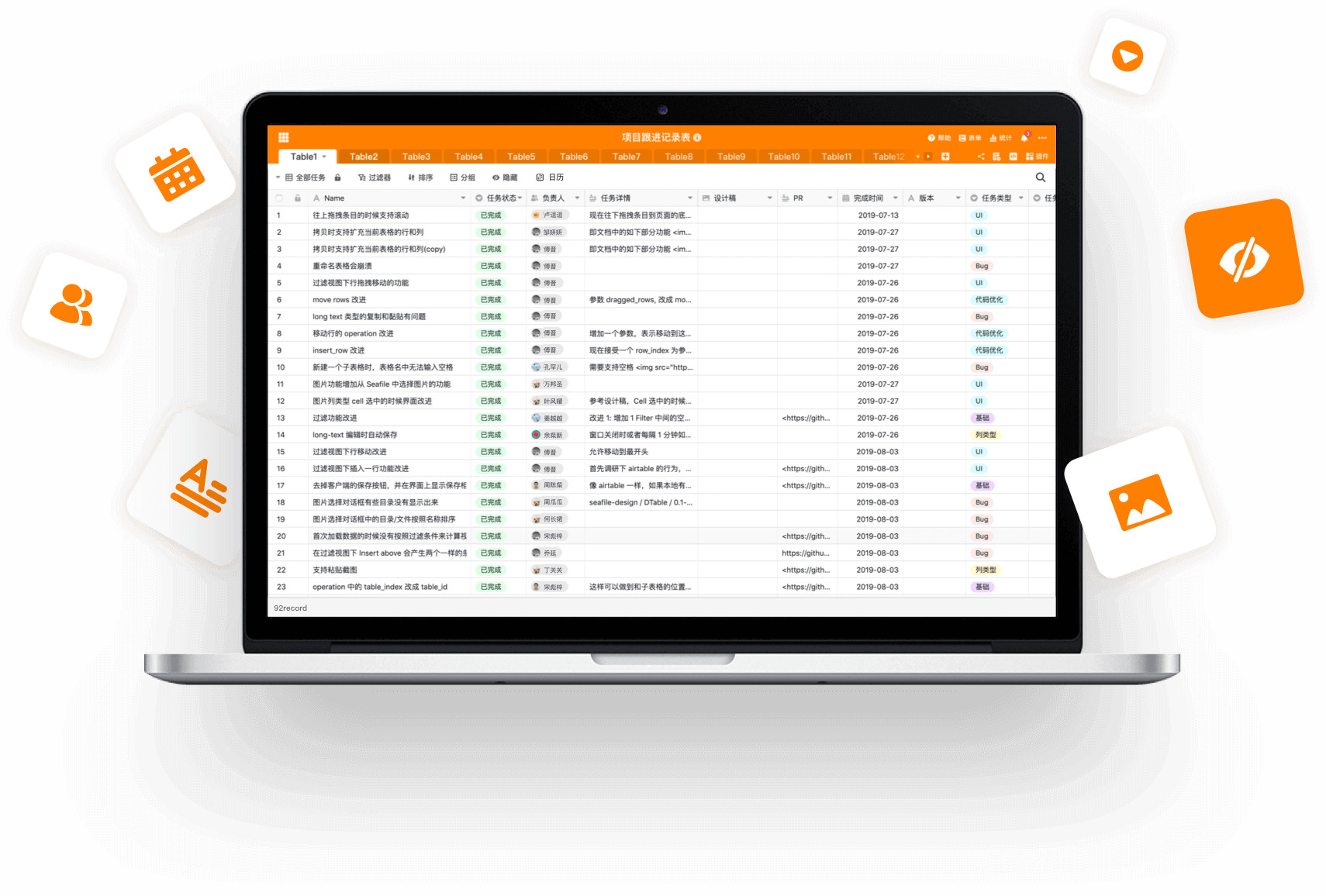 支持丰富的数据类型,比如图片、文件、长文本、标签、日期等等,便于记录项目的各项信息