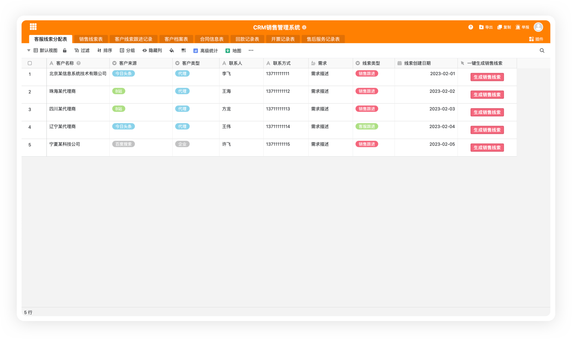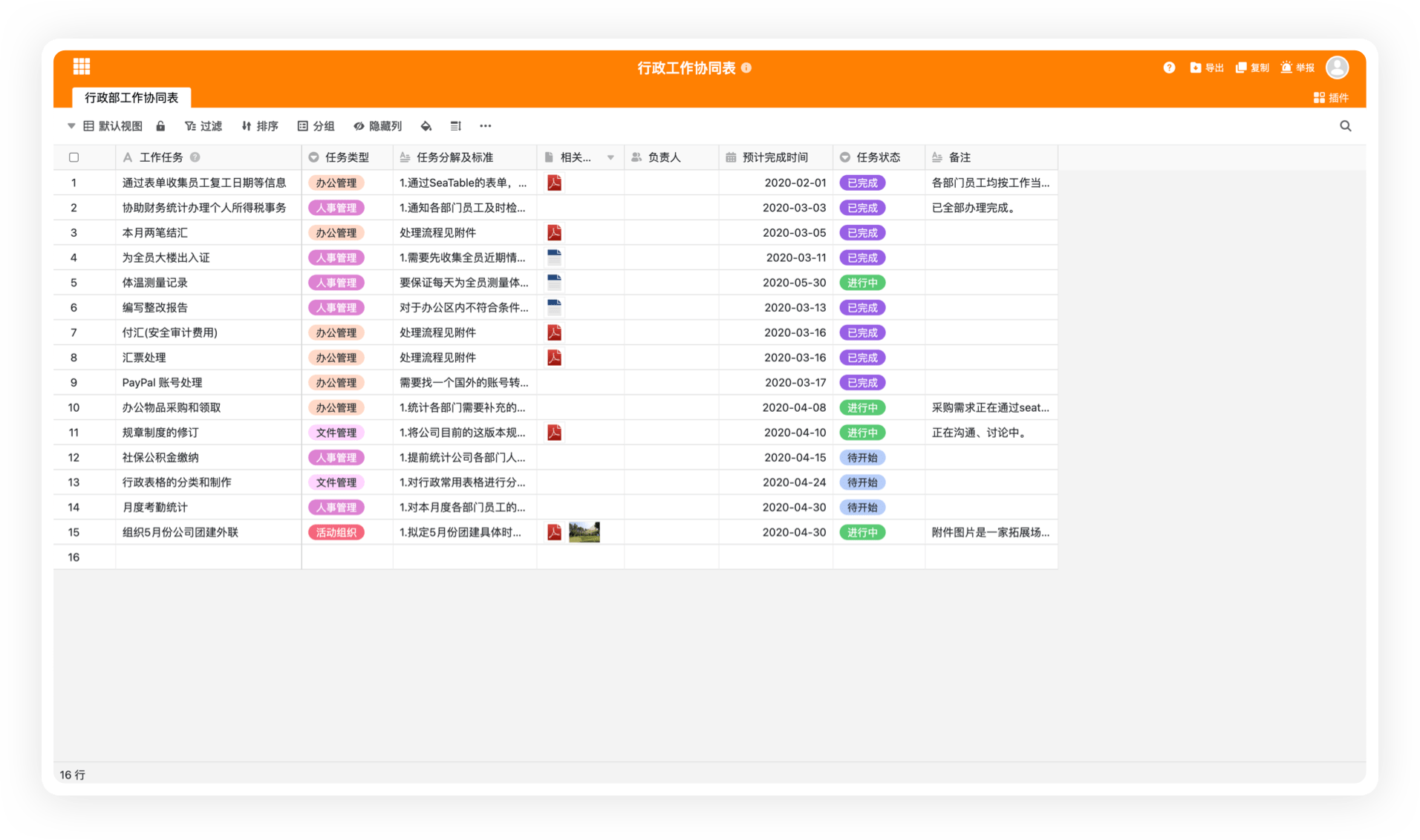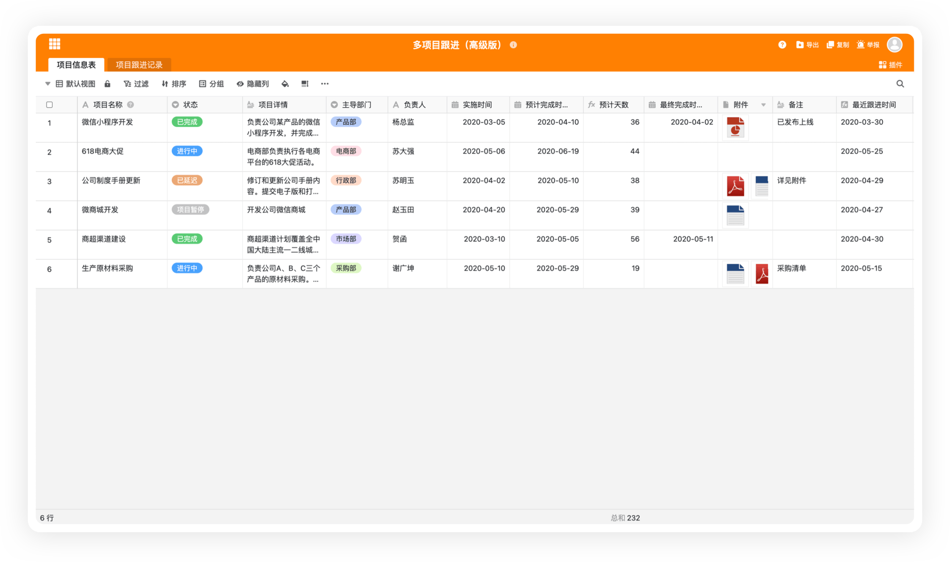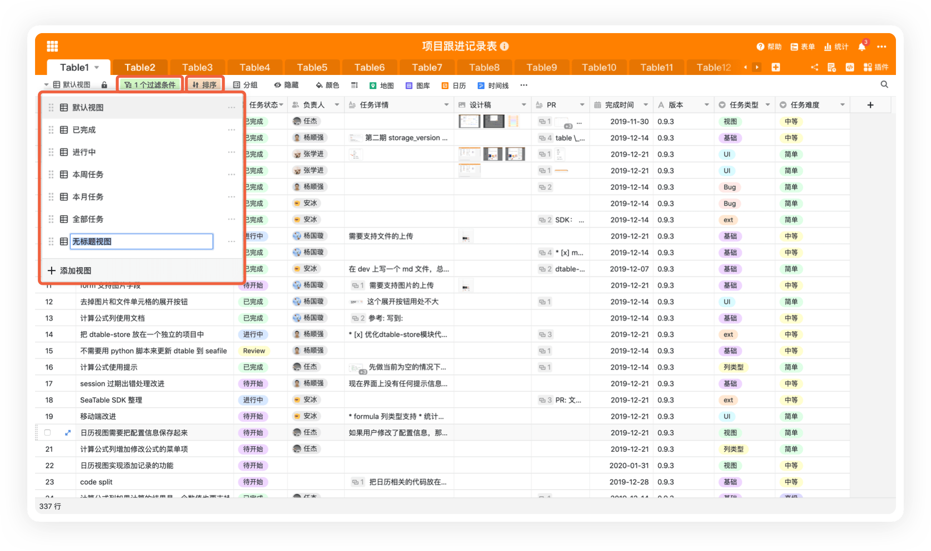 可以对同一个表同时提供多个表格视图,每个视图可以有不同的过滤、排序、分组等条件,数据按条件自动整理。可快速切换查看不同角度的数据。