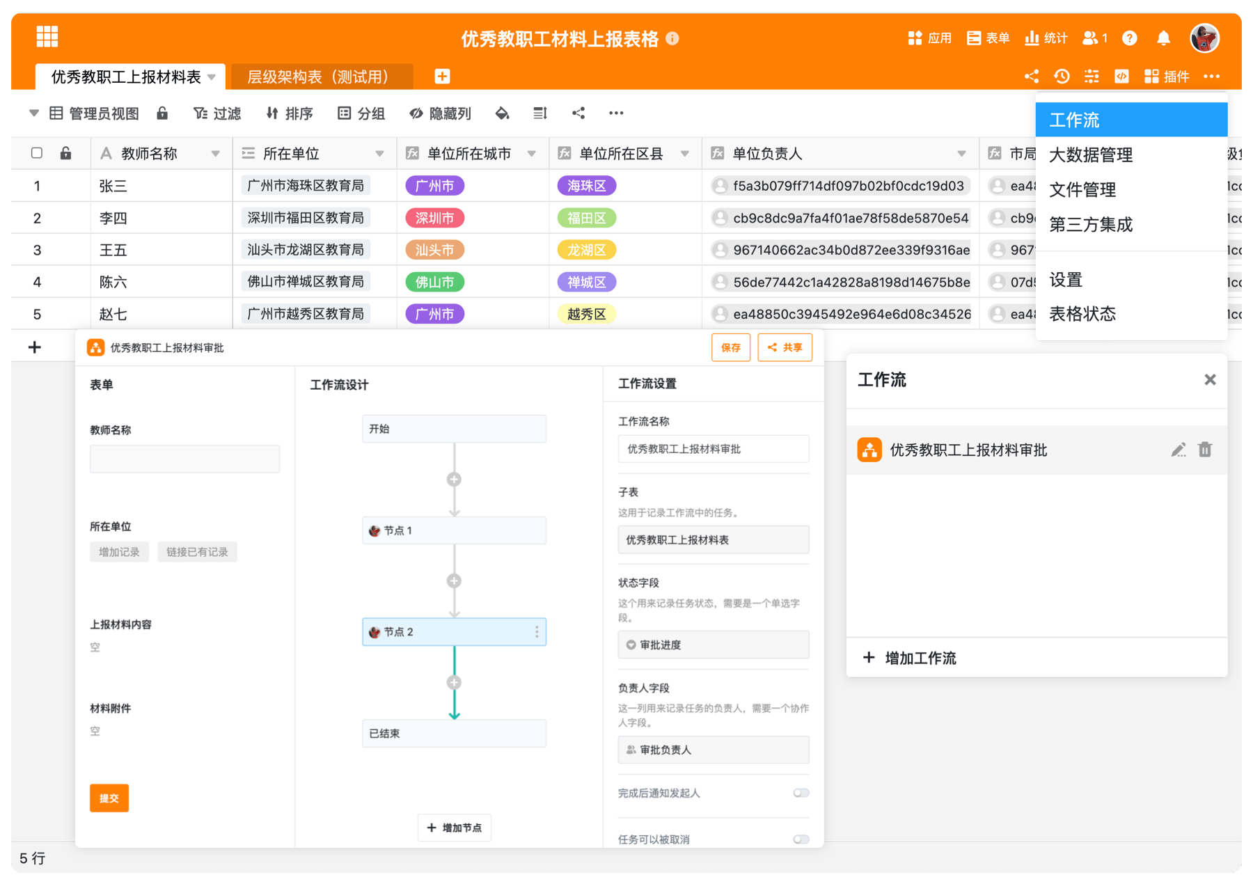 智能表格 + 工作流 + 应用搭建,一站式数字化平台; 功能全、灵活性强、零代码、上线快、成本低,并且提供脚本、API 和大数据管理功能; 可快速搭建出符合本校特点的各类业务系统和软件应用; 适用于不同层级和需求的校园数字化应用; 学校可私有化部署,支持 Logo 和域名等定制。