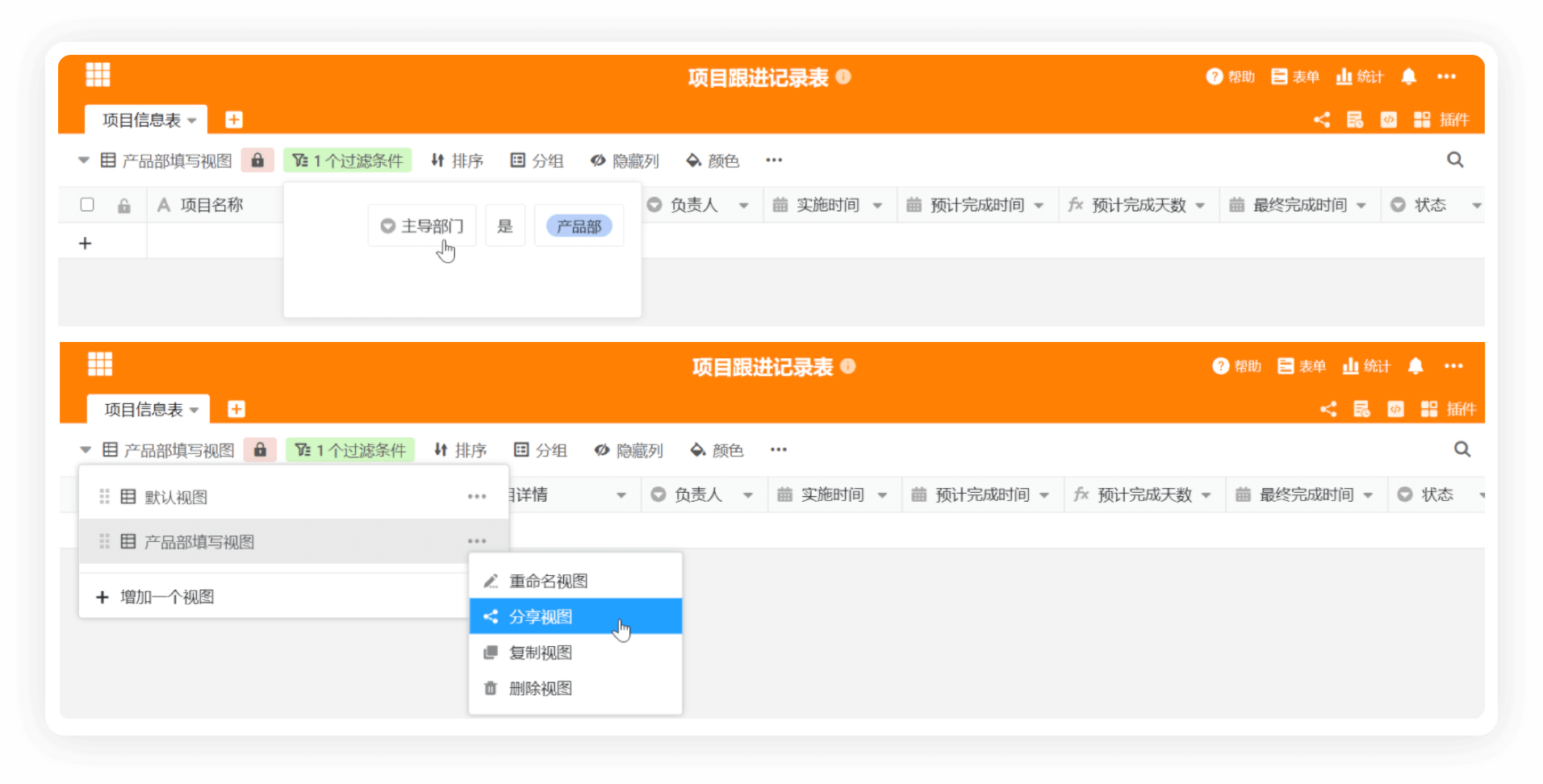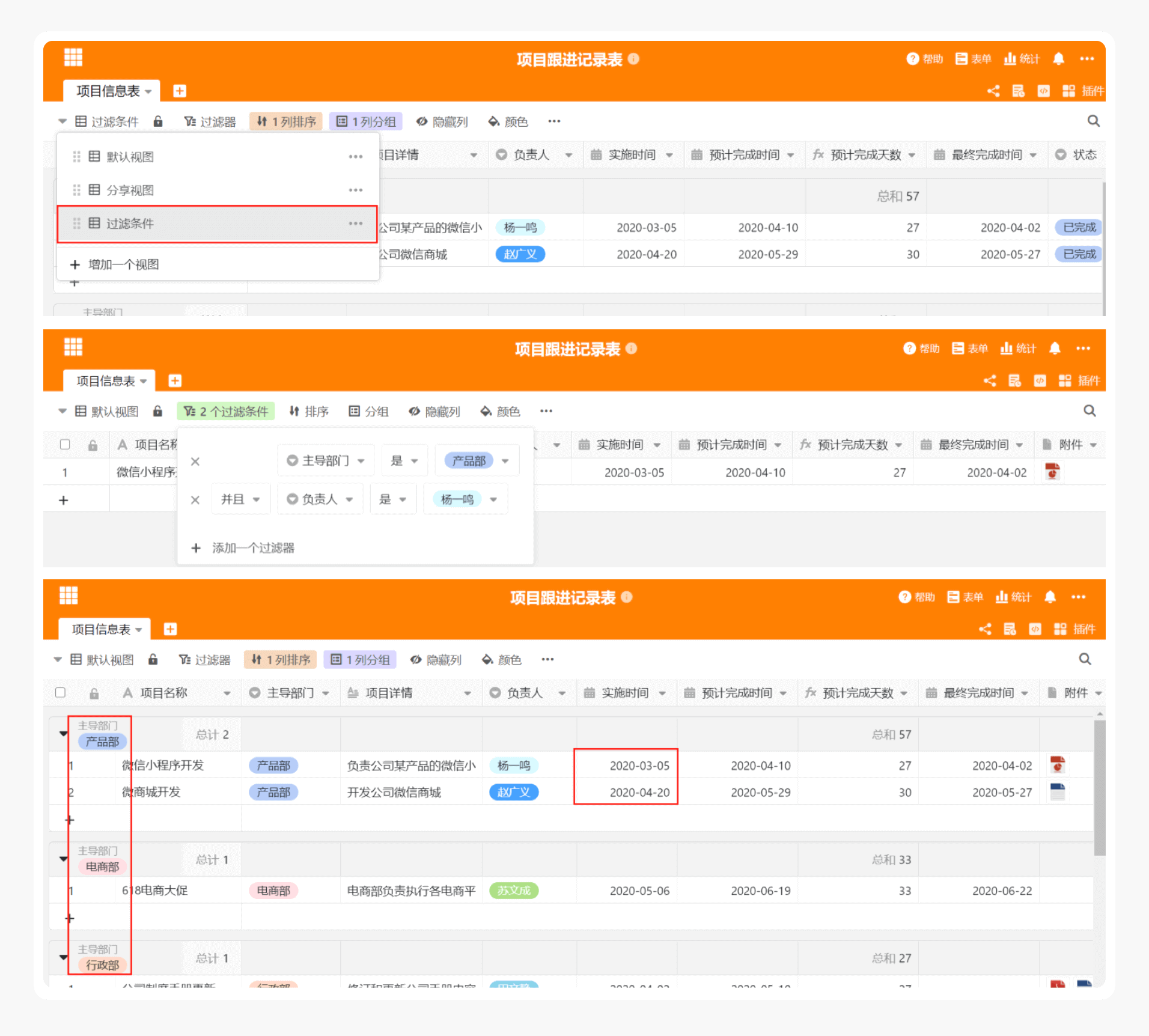 支持过滤、排序、分组的功能,方便对记录进行查找筛选,并支持保存为视图,方便的切换