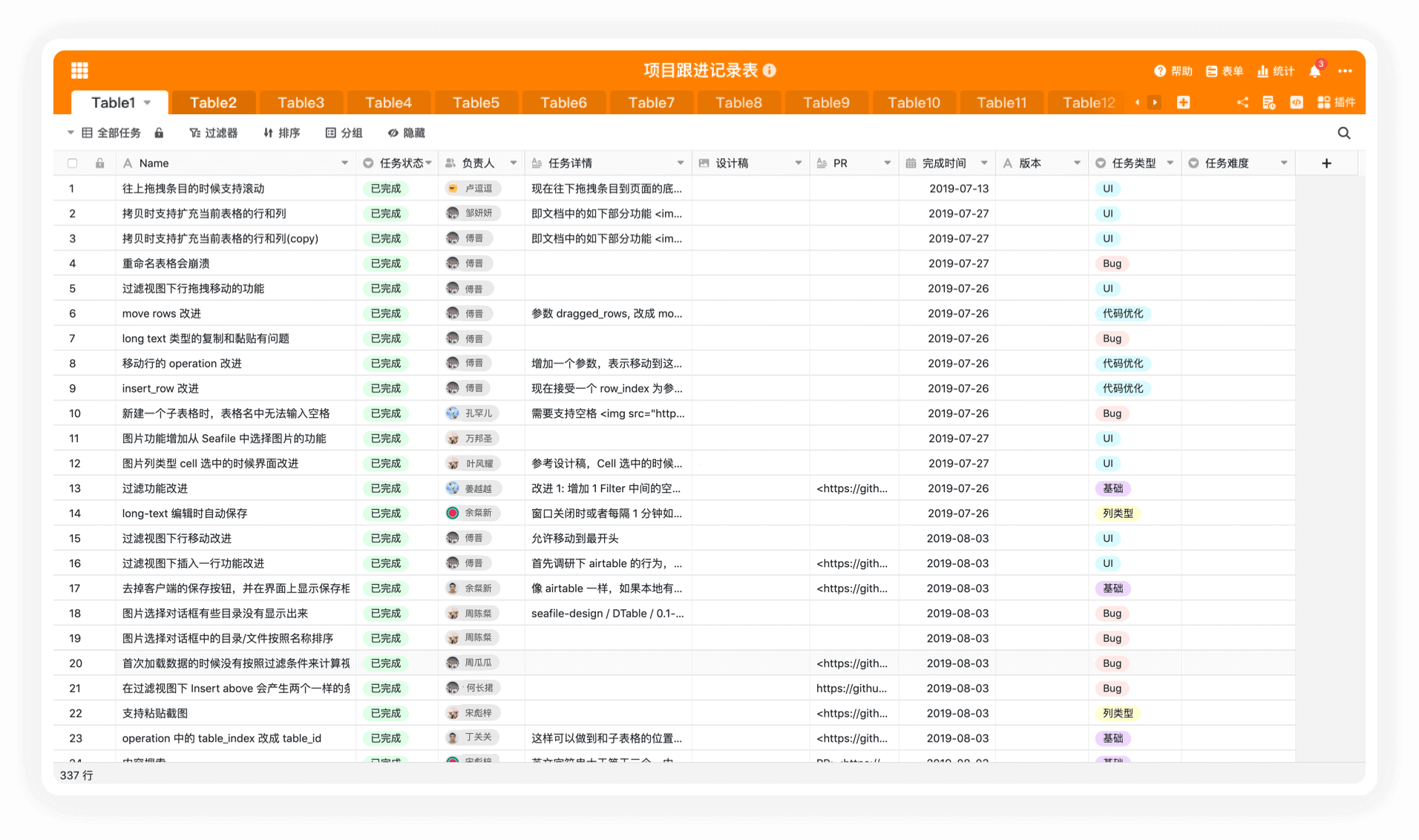 支持丰富的数据类型,比如图片、文件、长文本、标签、日期等等,便于记录项目的各项信息