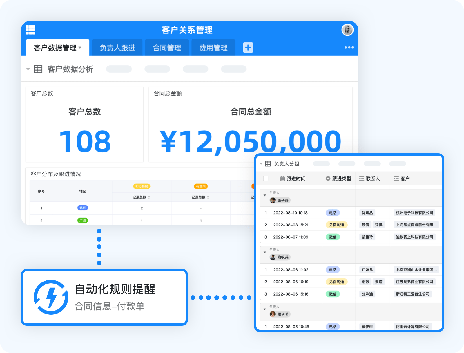 在生物医药行业中,SeaTable 可用于实施有效的客户关系管理策略。比如通过自定义表格和字段,可管理客户信息、沟通记录、跟进提醒、合同管理等,灵活搭建一个集中式的客户关系管理平台,帮助企业更好地了解客户需求、安排销售活动。