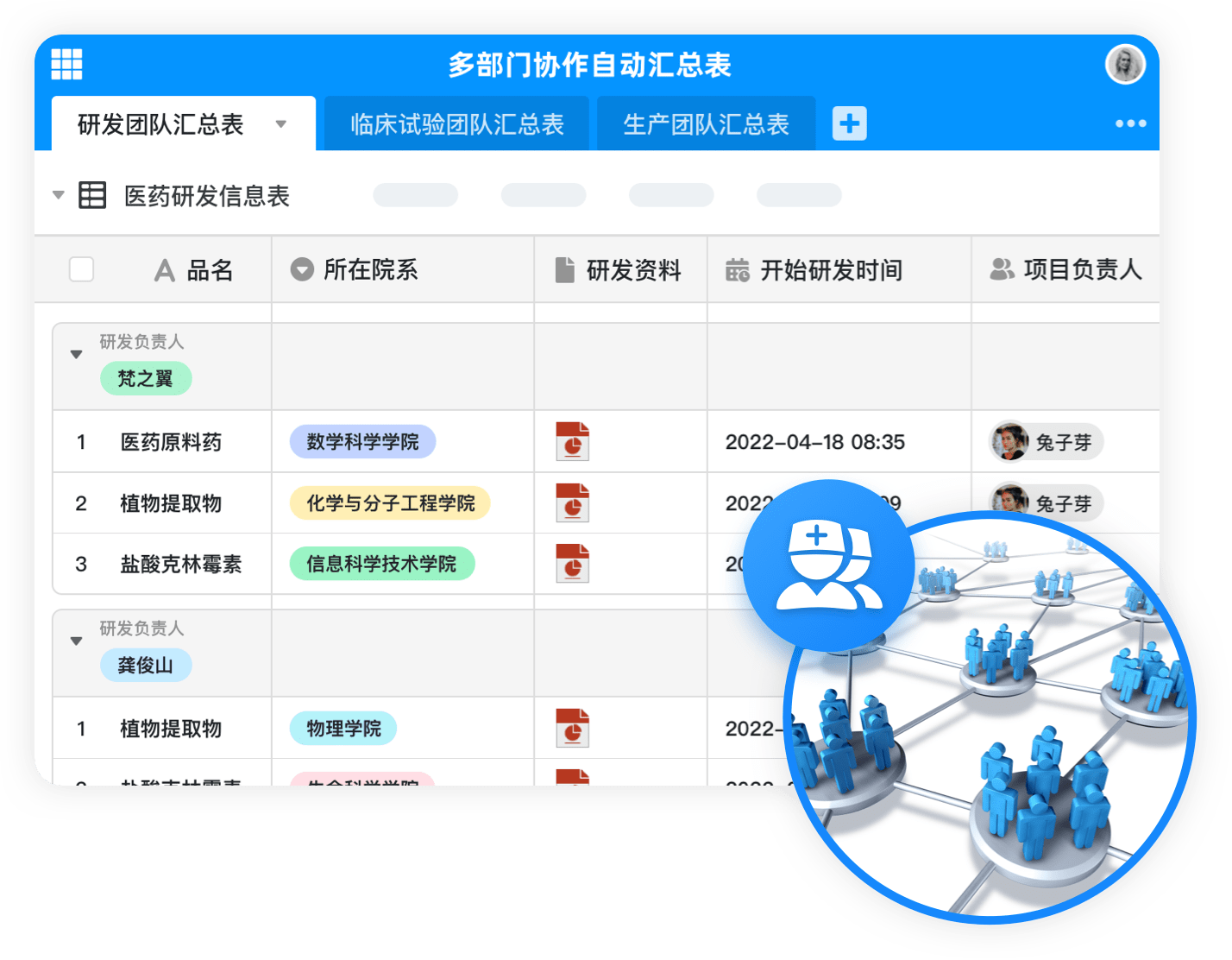 智能表格+工作流+应用搭建一站式数字化平台,多功能、可定制、易使用,帮助生物医药企业和机构高效应对各类数据管理、项目管理、工作流程、团队协作、合规性和创新研发等方面的挑战,快速提升工作效率,切实推动行业发展。