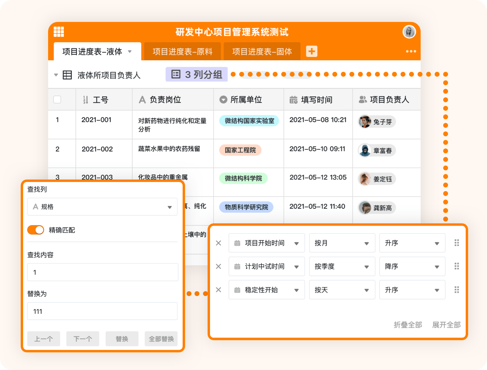 生物医药研究中产生大量实验数据,包括生物样本数据、药物测试数据、生物图像、实验参数和结果等。研究人员可以在一个表格中增加多个子表或创建不同的表格来结构化存储和管理不同类型的实验数据。比如利用视图(过滤、分组、排序等)、数据关联、公式、统计、查找和替换、高级搜索等,都可以帮研究人员高效整理和分析数据,减少数据处理的时间和精力。