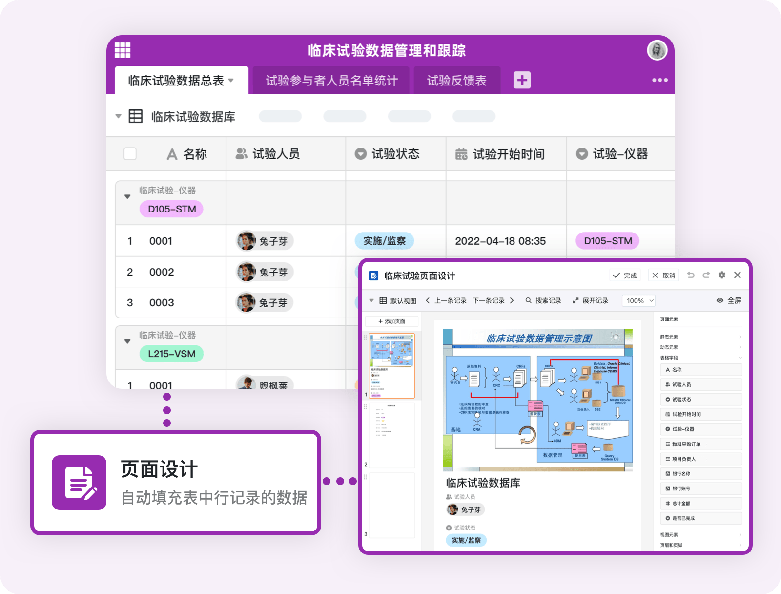 临床研究是生物医药行业不可或缺的一部分。SeaTable 可用于临床试验数据管理和跟踪。研究人员可以创建临床试验数据库表格,记录试验参与者、治疗方案、疗效评估、随访结果等重要信息。同时还可根据特定的工作流程需求设计和管理整个试验过程。共享成员可以随时随地及时更新试验数据、观察结果,查看文档报告。并且还可以对每行任务添加评论,或以长文本形式记录更多反馈内容。